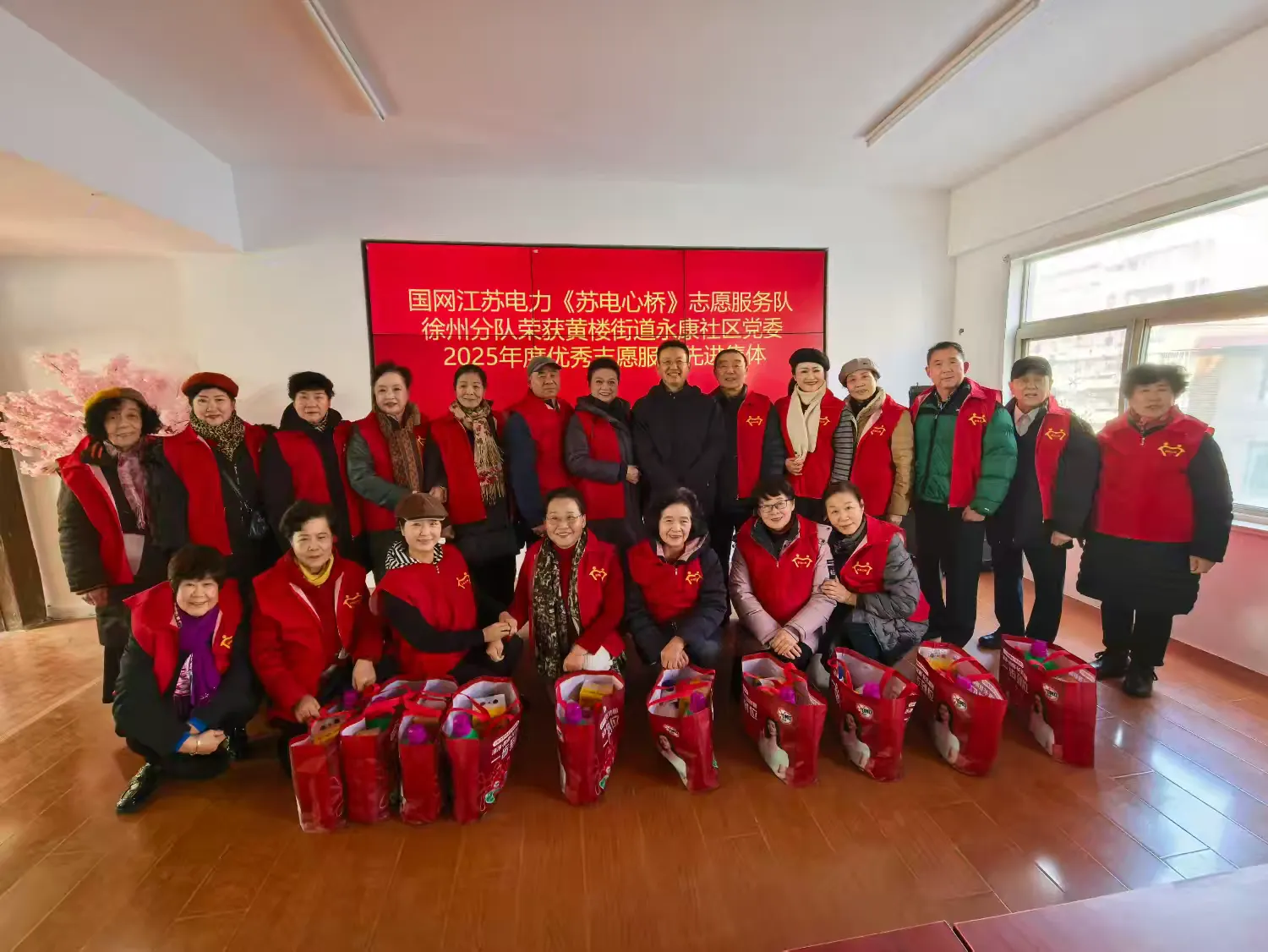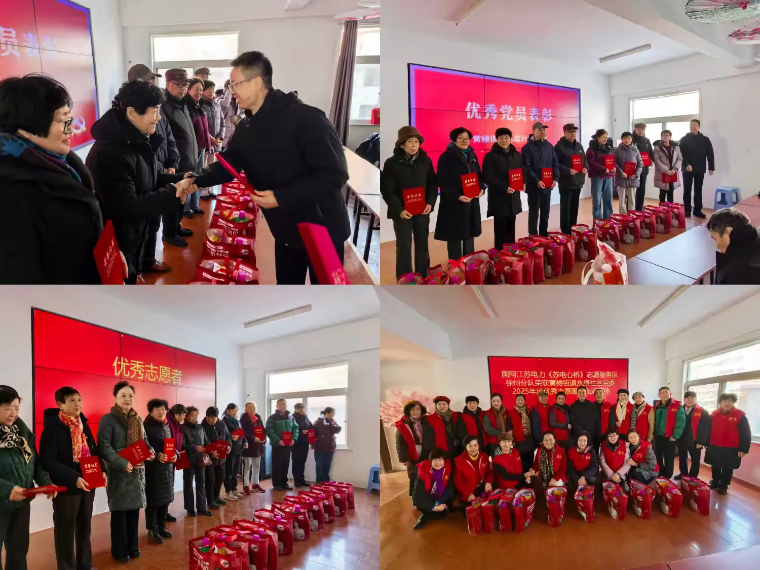表彰环节,徐州公司与社区共建代表为优秀党员、先进志愿者颁奖,国网江苏电力“苏电心桥志愿服务队徐州分队”获评黄楼街道永康社区党委2025年度优秀志愿服务先进集体。该分队作为江苏电力志愿服务体系中坚力量,以“电力为民、服务惠民”为使命,秉持敬老爱老助老的服务初心,组建党员骨干、技术能手、青年先锋专业化队伍,聚焦社区急难愁盼,常态化开展电力隐患排查、节能知识科普、爱心助老、关爱智障儿童等志愿服务,以专业服务架起政企民“连心桥”,成为基层治理的红色生力军。